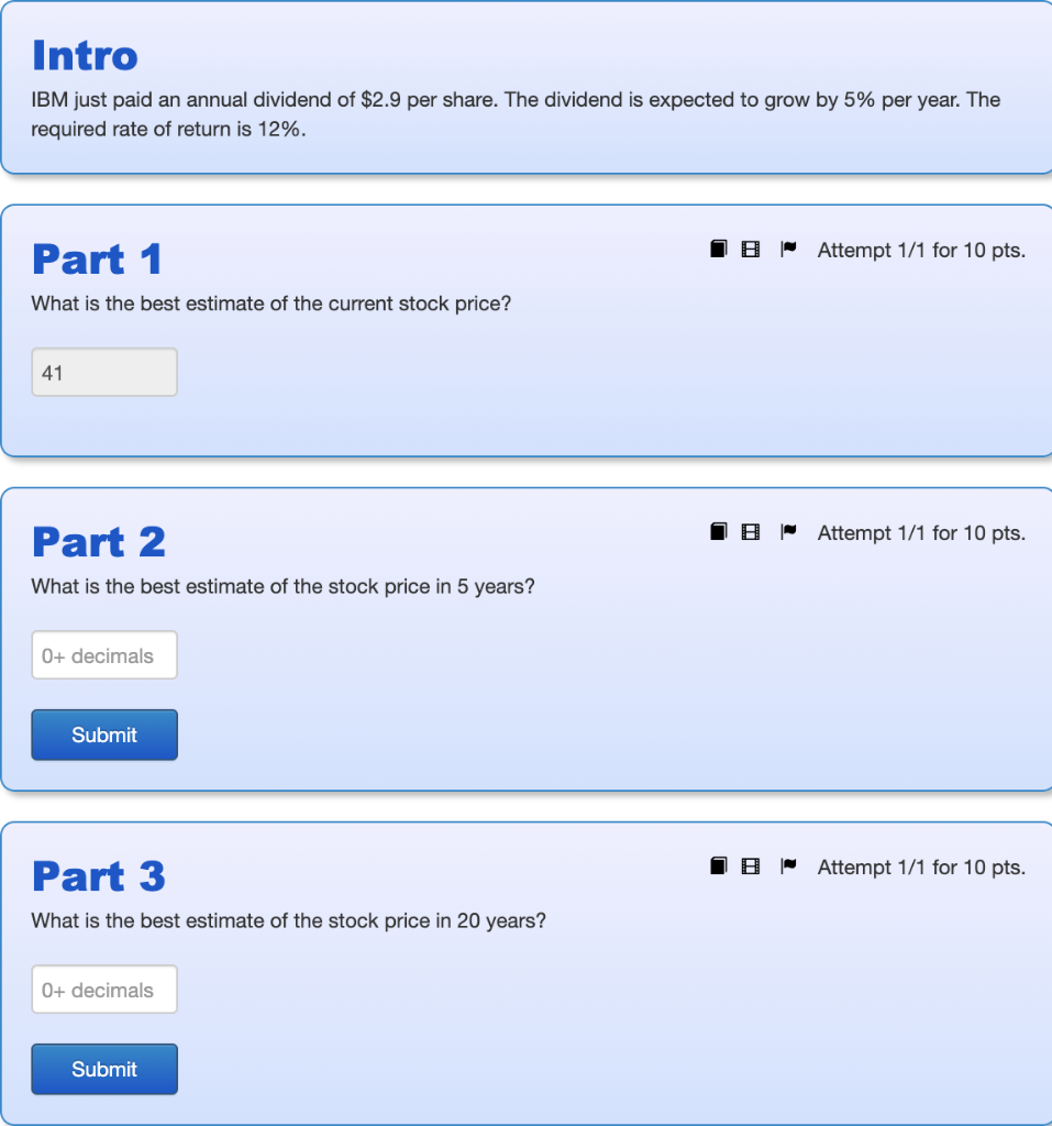 Solved Intro Ibm Just Paid An Annual Dividend Of 2 9 Per Chegg Com